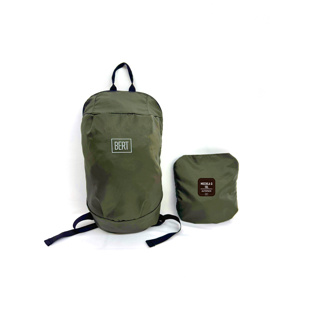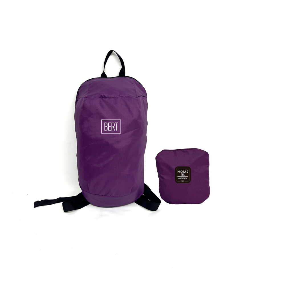 Mochila plegable con capacidad de 10 litros. Confeccionada en tela anti desgarro.