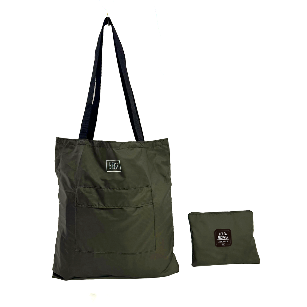 Bolsa plegable confeccionada en tela anti desgarro.